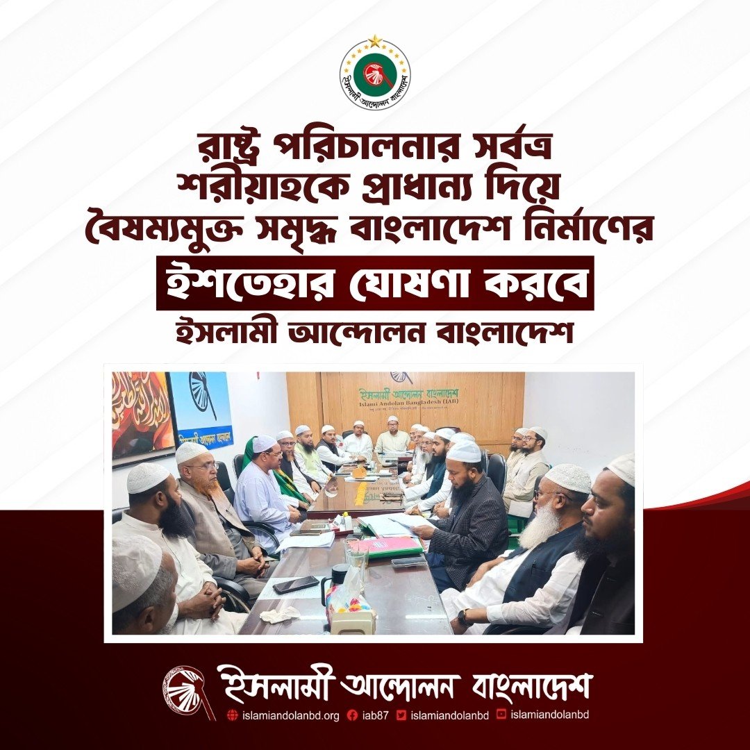 রাষ্ট্র পরিচালনার সর্বত্র শরীয়াহকে প্রাধান্য দিয়ে বৈষম্যমুক্ত সমৃদ্ধ বাংলাদেশ নির্মাণের ইশতেহার ঘোষণা করবে ইসলামী আন্দোলন