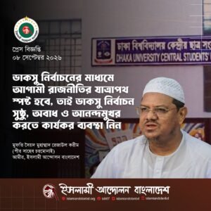 ডাকসু নির্বাচনের মাধ্যমে আগামী রাজনীতির যাত্রাপথ স্পষ্ট হবে, তাই ডাকসু নির্বাচন সুষ্ঠু, অবাধ ও আনন্দমুখর করতে কার্যকর ব্যবস্থা নিন -পীর সাহেব চরমোনাই September 8, 2025 বিস্তারিত পড়ুন »
