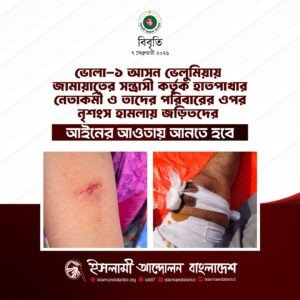 ভোলা-১ আসনে জামায়াতের সন্ত্রাসী কর্তৃক হাতপাখার নেতাকর্মী ওপর নৃশংস হামলায় জড়িতদের আইনের আওতায় আনতে হবে February 7, 2026 বিস্তারিত পড়ুন »
