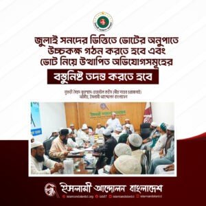 রাষ্ট্র পরিচালনার সর্বত্র শরীয়াহকে প্রাধান্য দিয়ে বৈষম্যমুক্ত সমৃদ্ধ বাংলাদেশ নির্মাণের ইশতেহার ঘোষণা করবে ইসলামী আন্দোলন January 31, 2026 বিস্তারিত পড়ুন »