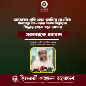 জনমতের প্রতি শ্রদ্ধা জানিয়ে প্রাথমিক বিদ্যালয়ে নাচ-গানের শিক্ষক নিয়োগের সিদ্ধান্ত থেকে সরে আসায় সরকারকে ধন্যবাদ -মাওলানা গাজী আতাউর রহমান November 3, 2025 বিস্তারিত পড়ুন »